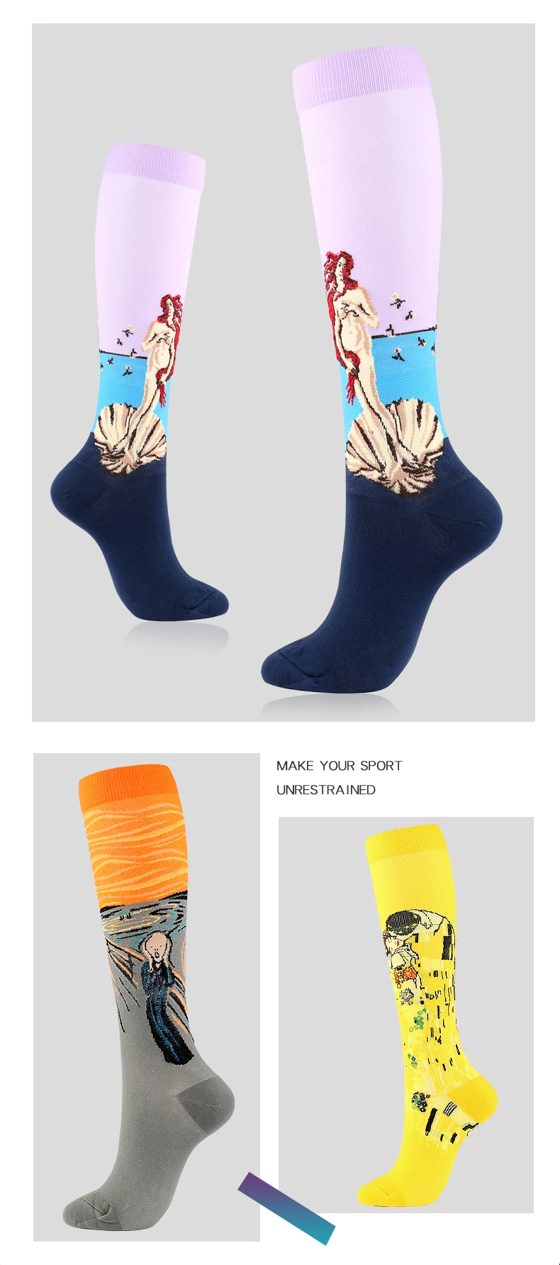 Компрессионные носки для женщин, медицинская известная картина маслом, Мона Лиза, нейлон, для бега, спорта на открытом воздухе, оптовая продажа