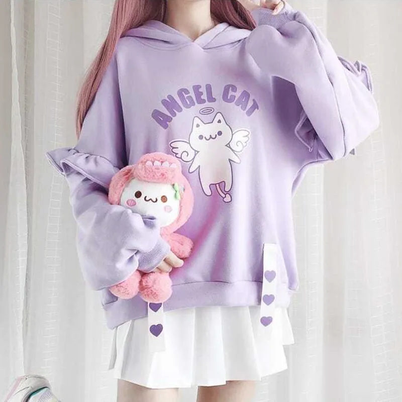 Осенне-зимняя женская толстовка с капюшоном в стиле Харадзюку с мил...
