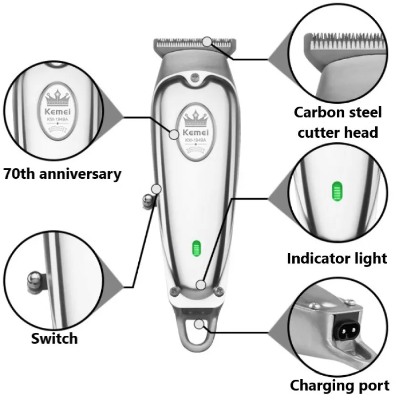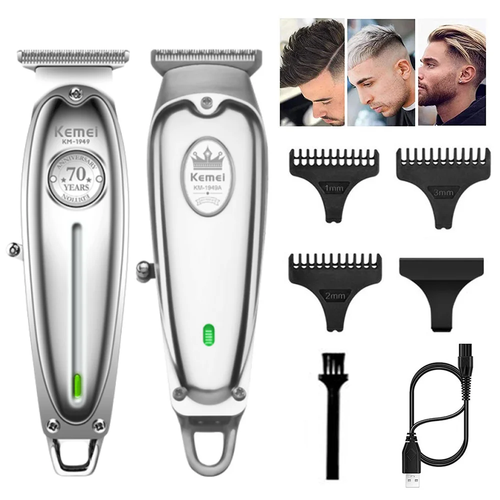 Электрический парикмахерский инструмент Kemei 19491949A, полностью металлический корпус, триммер для волос для мужчин, литий-ионный мощный триммер для бороды, отделочная машина