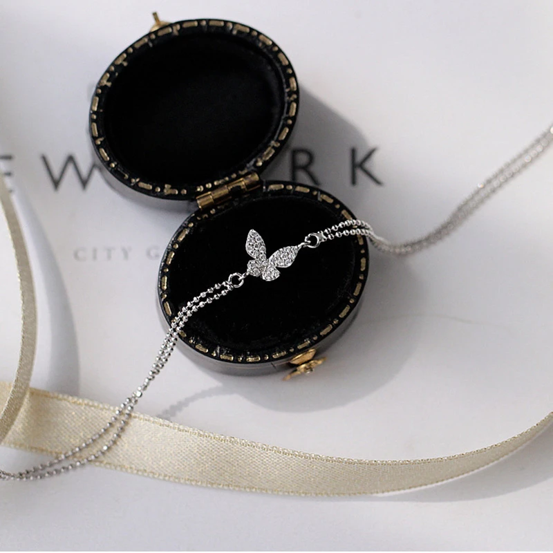 Женский браслет-бабочка из циркона, серебряный браслет-цепочка со штампом S925