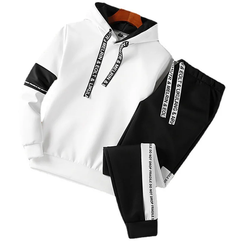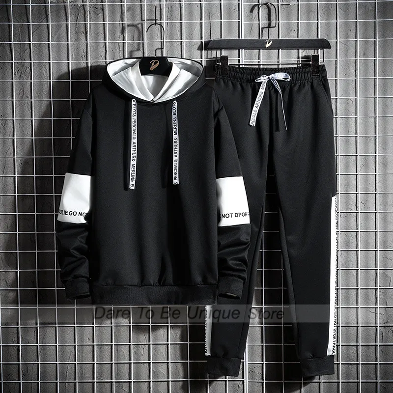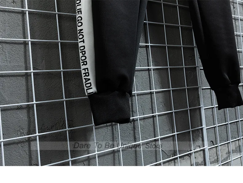 Костюм спортивный мужской из 2 предметов, толстовка с капюшоном и штаны, уличная одежда в стиле пэчворк с надписью, спортивная одежда в Корейском стиле, зима