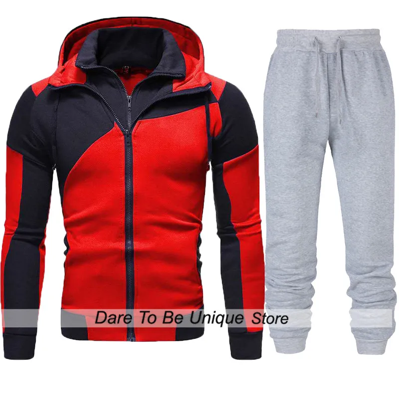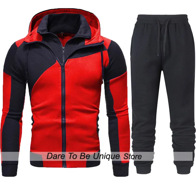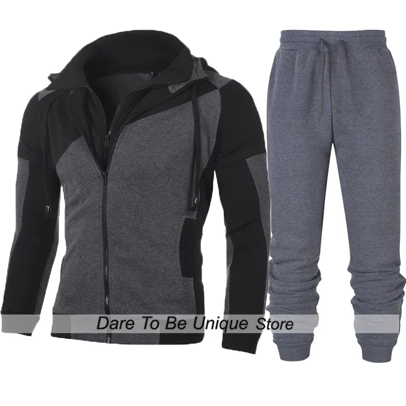Мужской спортивный костюм из 2 предметов, Свитшот и спортивные штаны, спортивная одежда, толстовки с двойной молнией, повседневная мужская теплая одежда, впитывающая влагу