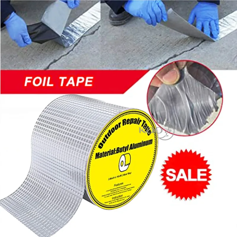 НОВАЯ алюминиевая фольга Бутилкаучуковая лента самоклеящаяся водонепроницаемая для крыши трубы морской ремонтВодонепроницаемость и высокая термостойкость, (-40 градусов Цельсия-120 градусов Цельсия), коэффициент удлинения 1000%, устойчивость к старению в течение 30 летОбъем использованияРемонт цветных стальных отверстийРемонт стеновых трещинМеталлический зазор для ремонтаРемонт цементных трещинРемонт поврежденийРемонт просачивания водыВысокая термостойкостьДекорирование зданий, ремонт герметизации, защита от коррозии трубопровода, инженерное строительство, больше функций.