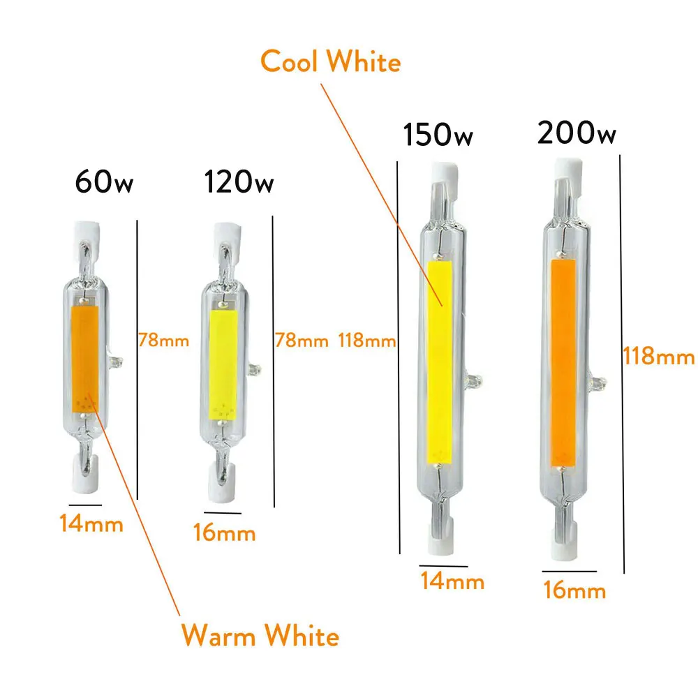 Приглушаемые галогенные лампы R7s, сменные светодиодные лампы с керамическим стеклом COB 78118 мм, белыйтеплый белый свет, 5 Вт, 7 Вт, 10 Вт, 20 Вт, 110 В, 220 В