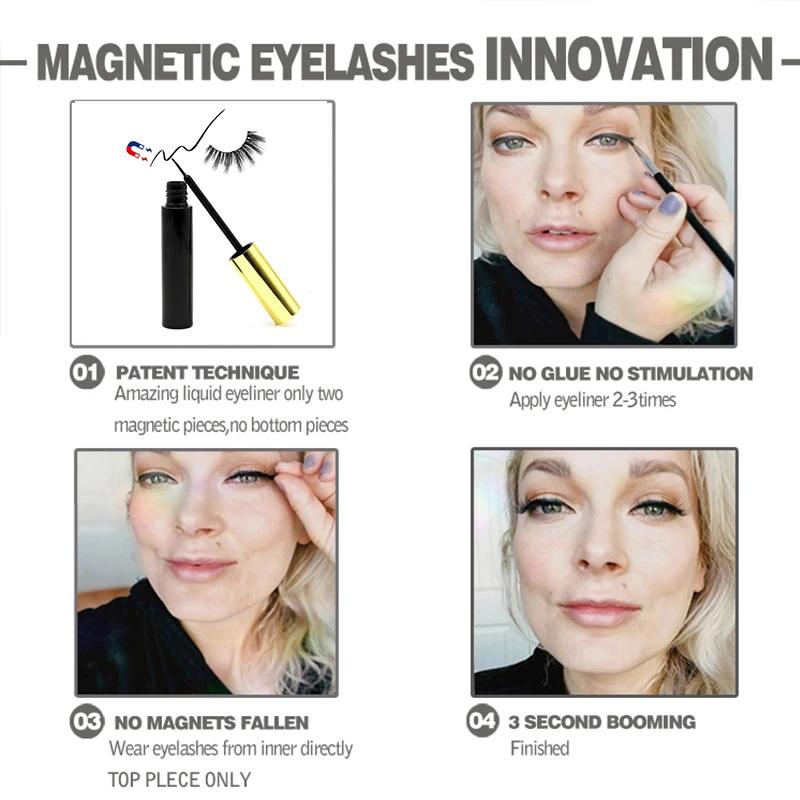 Примечание: Используйте магнитную подводку для глаз как минимум дважды; Магнитная подводка для глаз и магнитные ресницы привлекут друг друга.