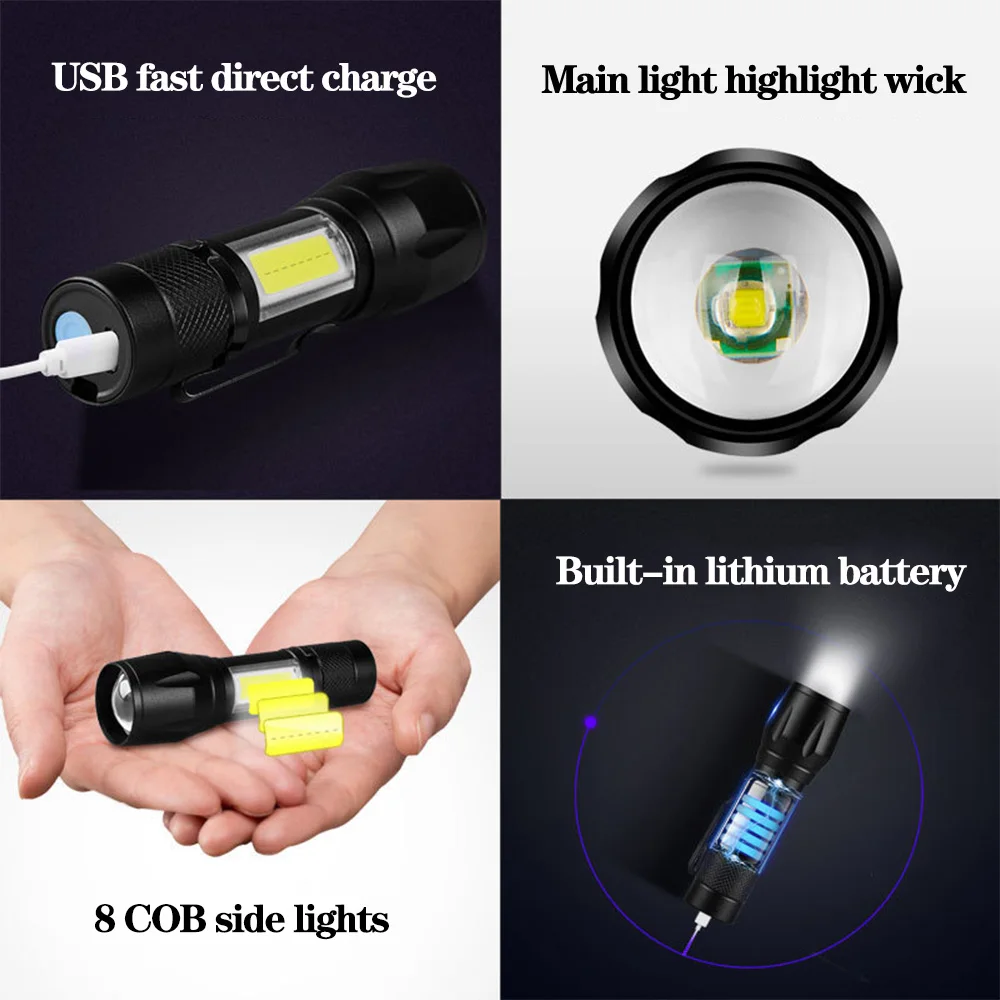 Светодиодный мини-фонарик с COB матрицей, 100000 люмен, перезаряжае...
