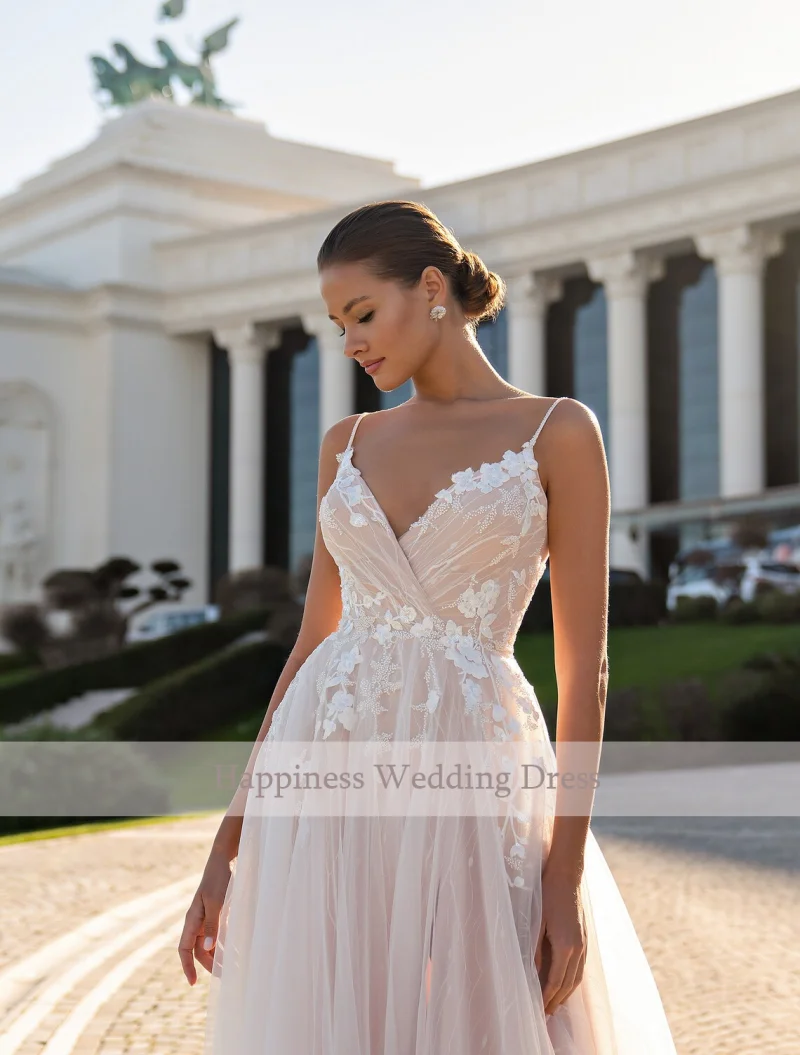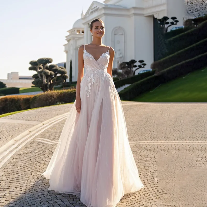 Модные пляжные свадебные платья на бретелях-спагетти, розовое платье невесты с аппликацией и открытой спиной, индивидуальный пошив