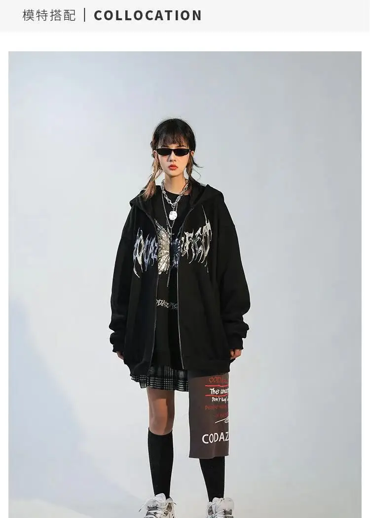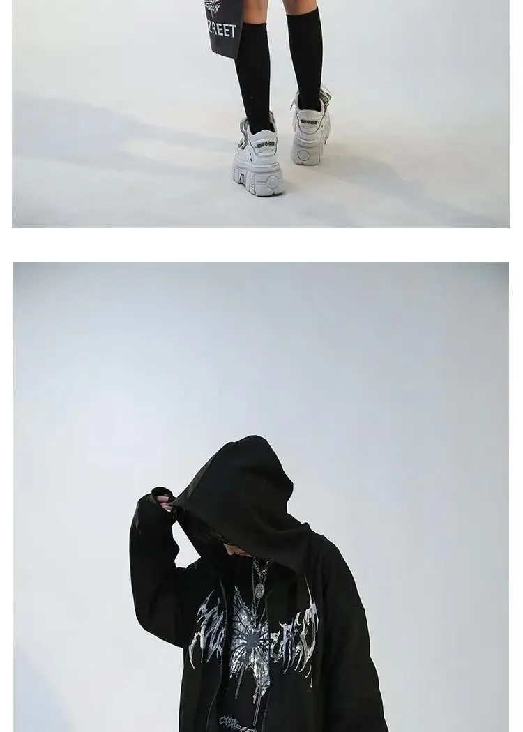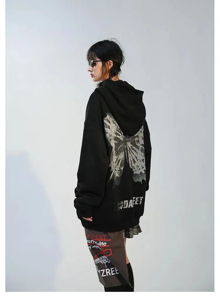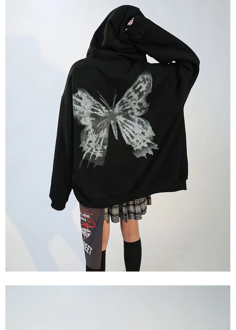 Harajuku Хип-Хоп Уличная толстовка на молнии мужская куртка с принтом бабочки Толстовка Goth Y2k Эстетическая ткань гранж-панк Sweartshirt