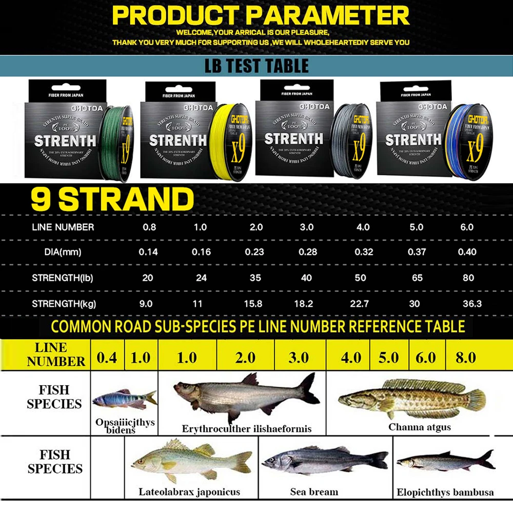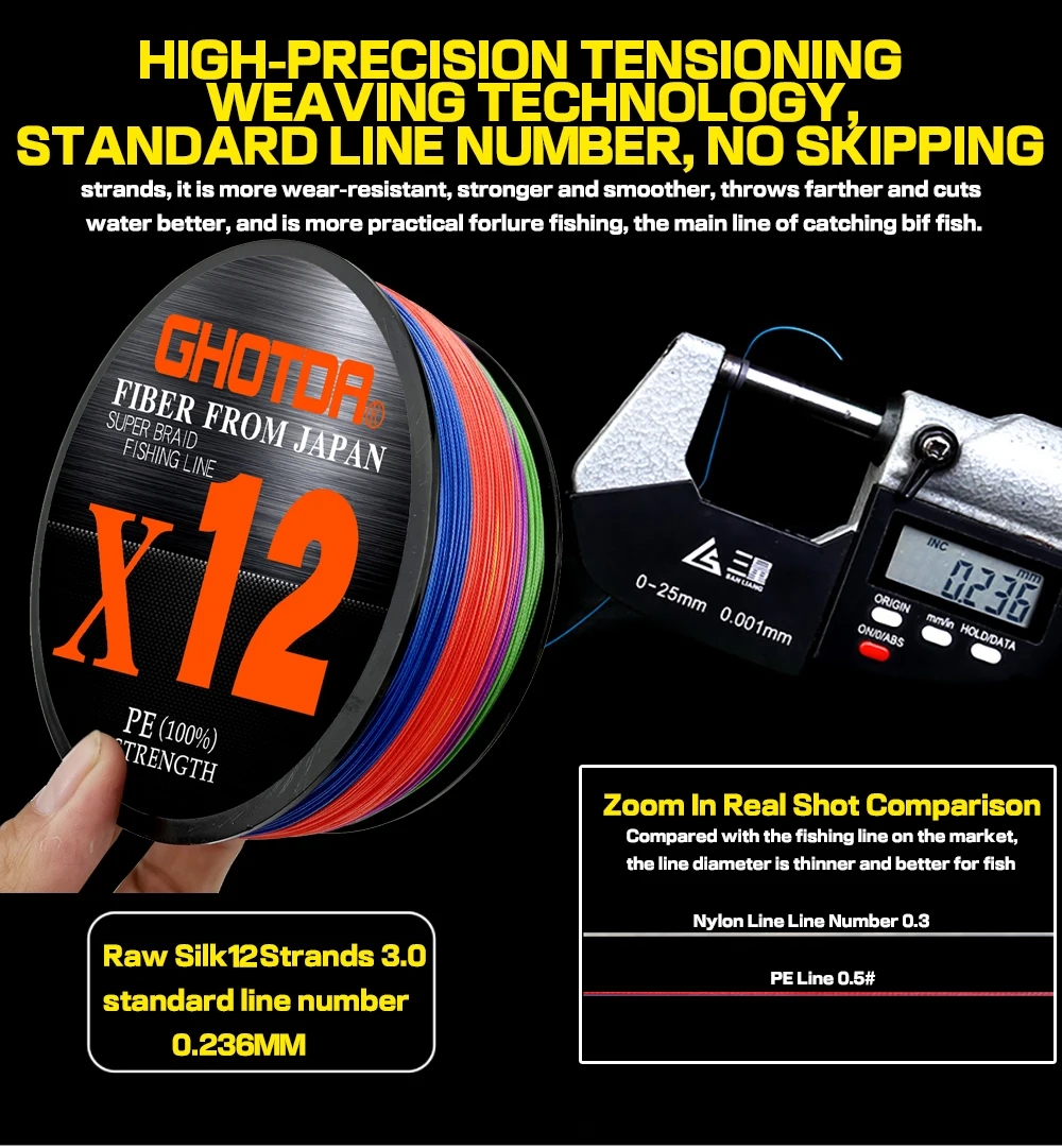 Сверхпрочная рыболовная леска GHOTDA 100300500 м, 912 нитей, импортное волокно, Полиэтиленовая износостойкая рыболовная леска