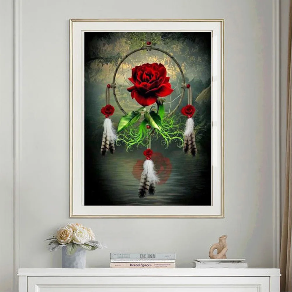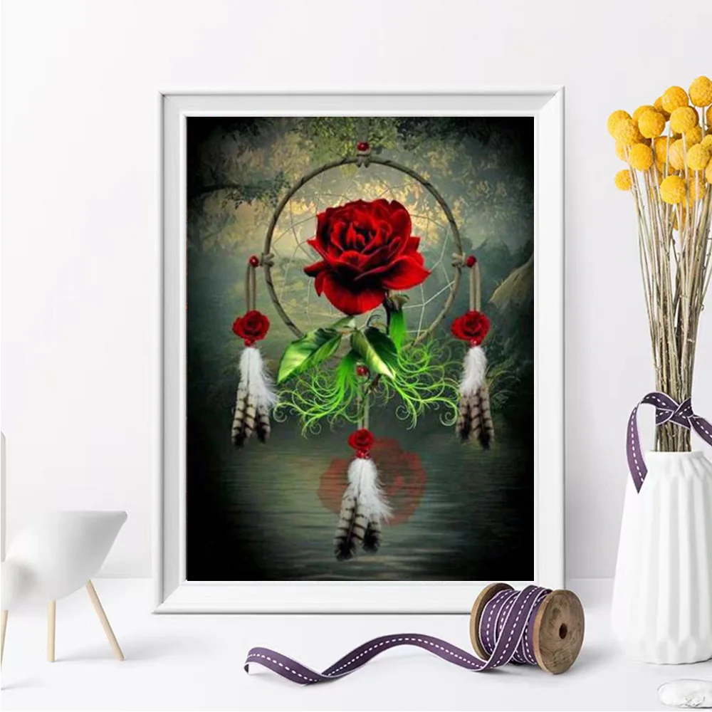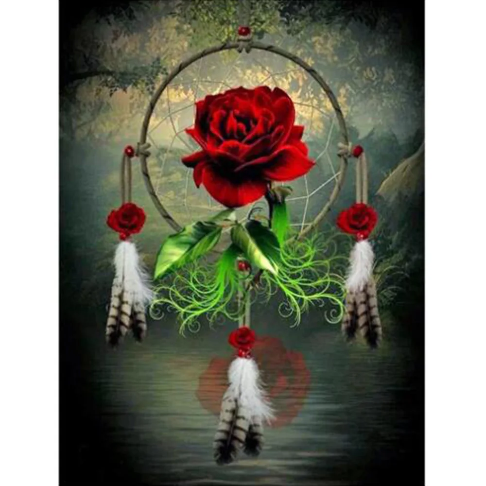 Diamond Painting Name:DIY Diamond Painting Rose Flower Feather