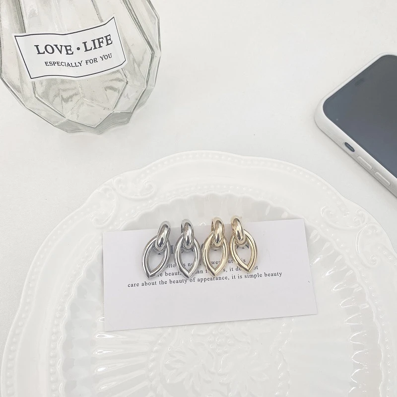 Модные новые геометрические серьги в стиле ретро в форме капли, двухцветные металлические темпераментные металлические прохладные простые универсальные серьги с холодным ветром