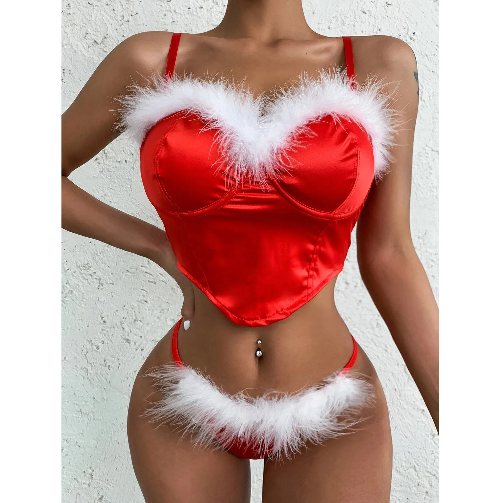 Соблазнительное нижнее белье, комбинация, женский костюм Санта-Клау...