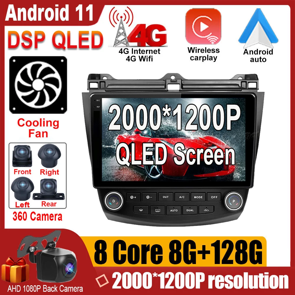 Автомобильное радио, мультимедийный видеоплеер, GPS для Honda Accord 7 CM UC CL 11,0-2003, IPS QLED экран, беспроводной Carplay, Android 2008