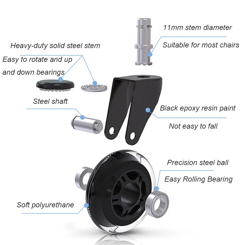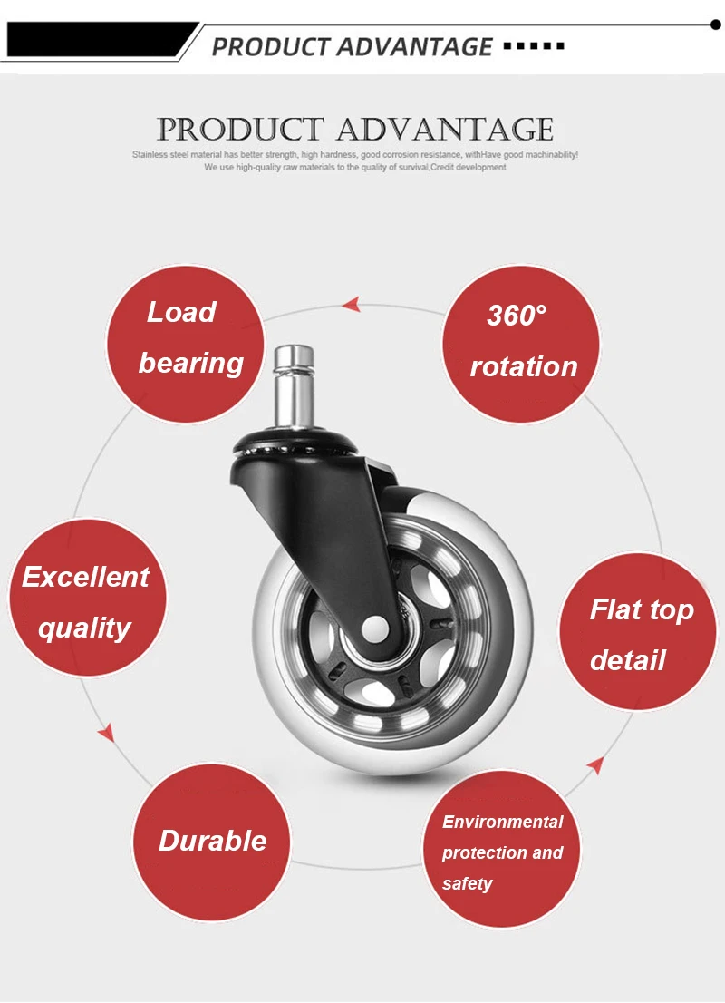 2,53-дюймовый ролик для офисного стула, универсальные бесшумные кол...