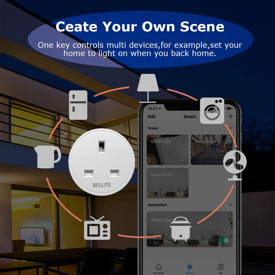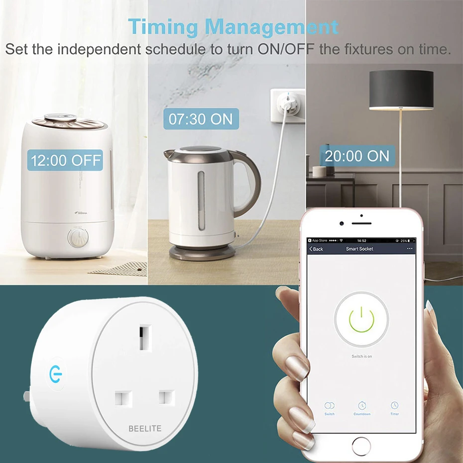 Установите смарт-вилки, включайте или выключайте автоматически в определенное время. Вы можете подготовить ужин, прежде чем отправиться домой, или дистанционно управлять другими электрическими элементами, такими как лампы, электрические чайники, кофеварки, вентиляторы и т. д. Умная вилка Beelite поможет вам сэкономить на счете за электричество и продлить срок службы продукта