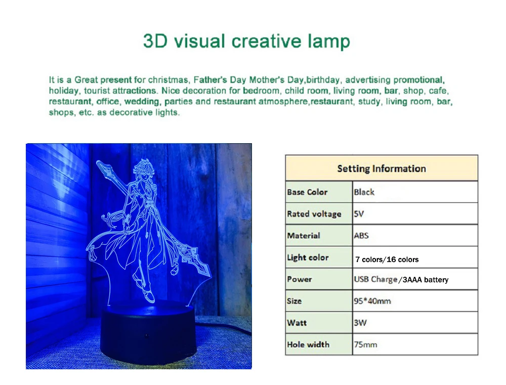 Новинка Genshin ударная акриловая 3D светящаяся градиентная красочная декоративная настольная лампа для спальни детская игрушка подарок на день рождения и Рождество