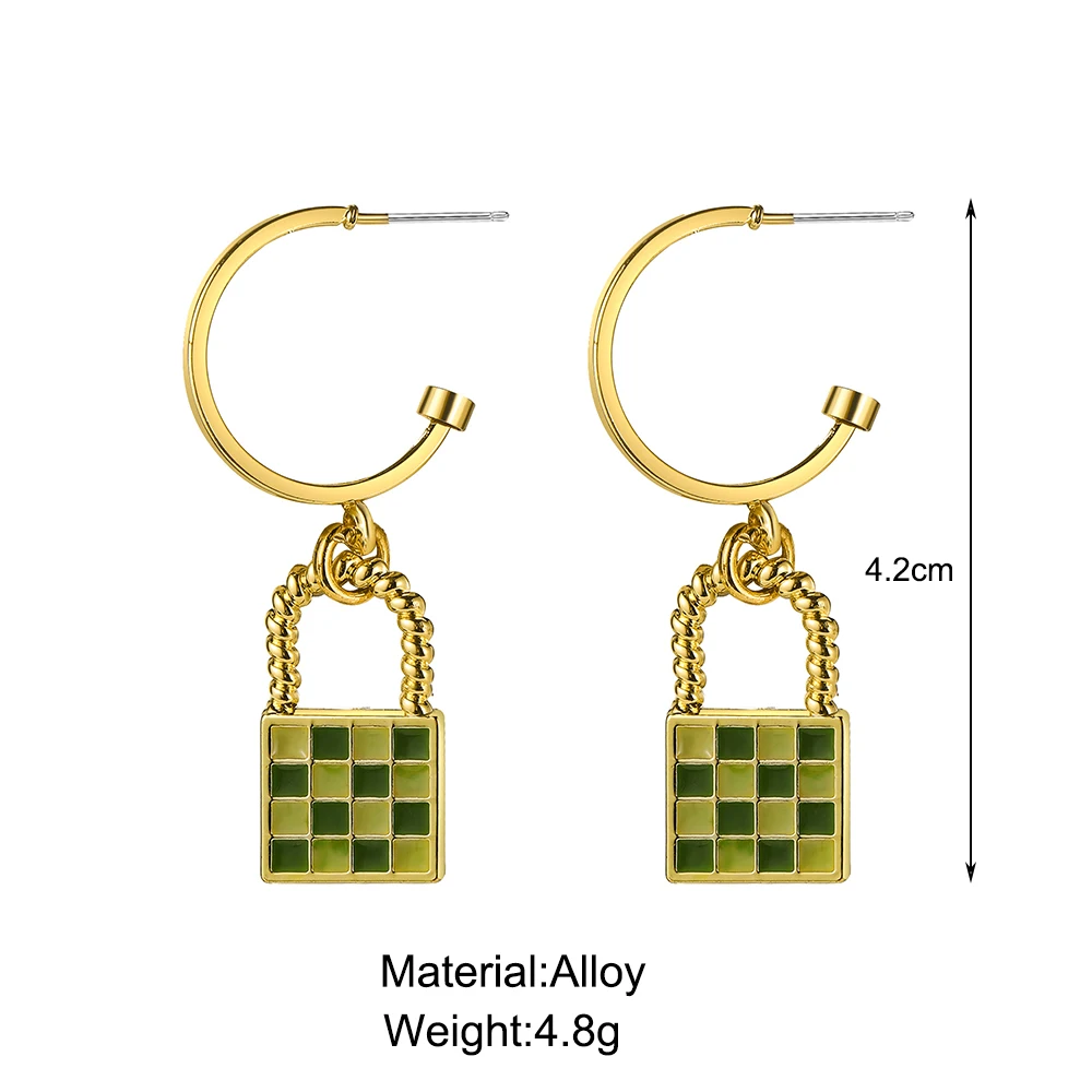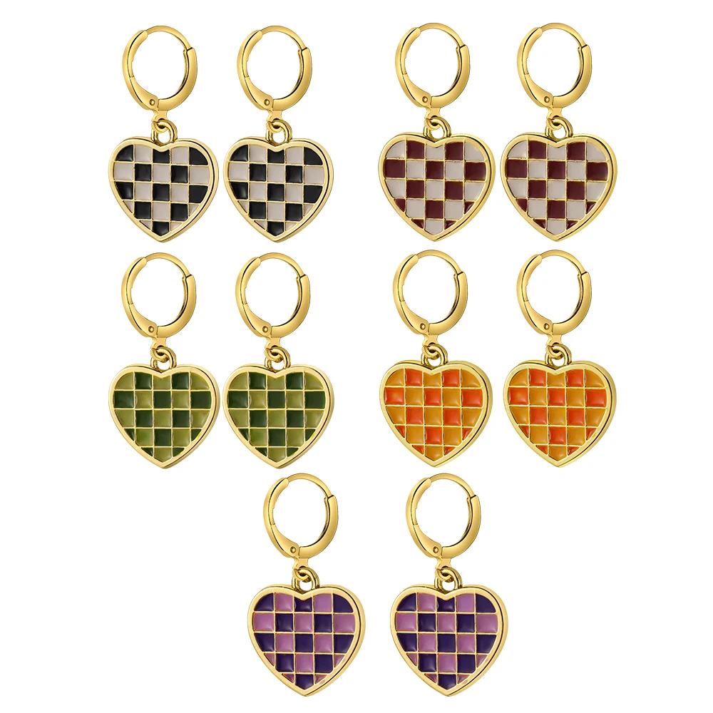 Роскошные круглые серьги-кольца в клетку с подвеской в форме сердца...