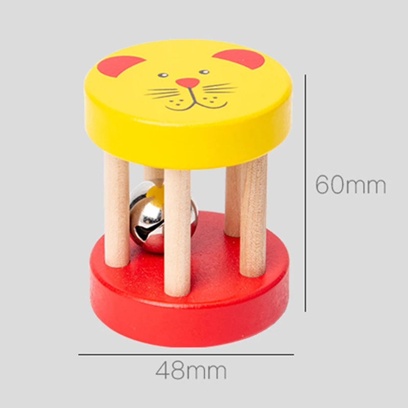 Развивающая деревянная погремушка для детей 0-12 месяцев, безопасная сенсорная игрушка-погремушка с колокольчиком для животных, игрушка для детской коляски Монтессори