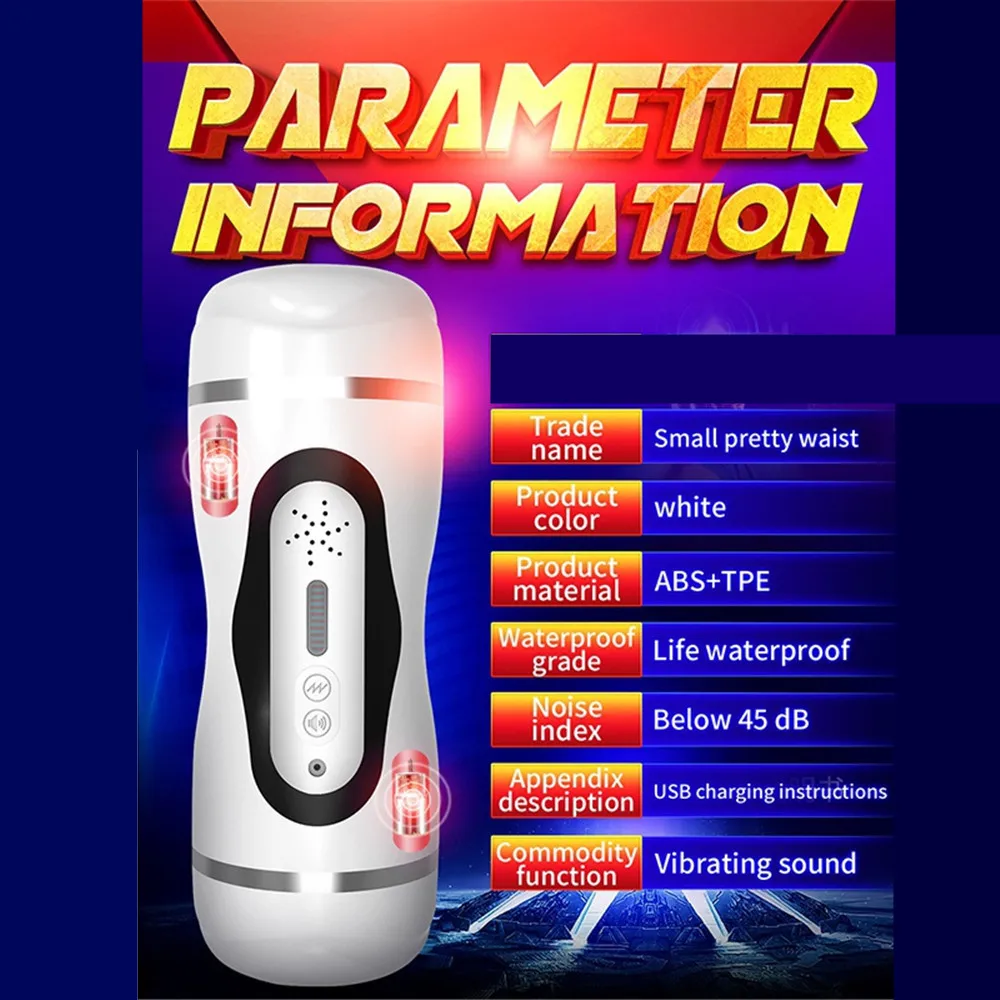 Описание:Название продукта: чашка для мастурбации с отрицательным давлениемМатериал: TPE + ABSДизайн с двойной головкой: влагалище + полость ртаЗарядка: зарядное устройство USBРазмер: 220*78*78 ммДлина канала: 210 ммИндекс шума: ниже 45 децибелВодонепроницаемость: ВодонепроницаемостьОсобенности продукта:1. Имитация всасывания зажима отрицательного давления сжатия Инь и голосового взаимодействия2. 6D стерео звук обновления, произношения на трех языках (китайский/английский/японский)3. Измерение скорости, датчик силы, включая двойное жаркое яйцо4. 360 ° посылка массаж, 12 частоты сильный шок5. Чип быстрой зарядки6. Интеллектуальное отопление, имитирующее температуру женских частных частей7. Двуглавый канал, рот + pudenda8. Посылка включает в себя:1 * мастурбатор, 1 * USB кабель для зарядки, 1 * Руководство пользователя