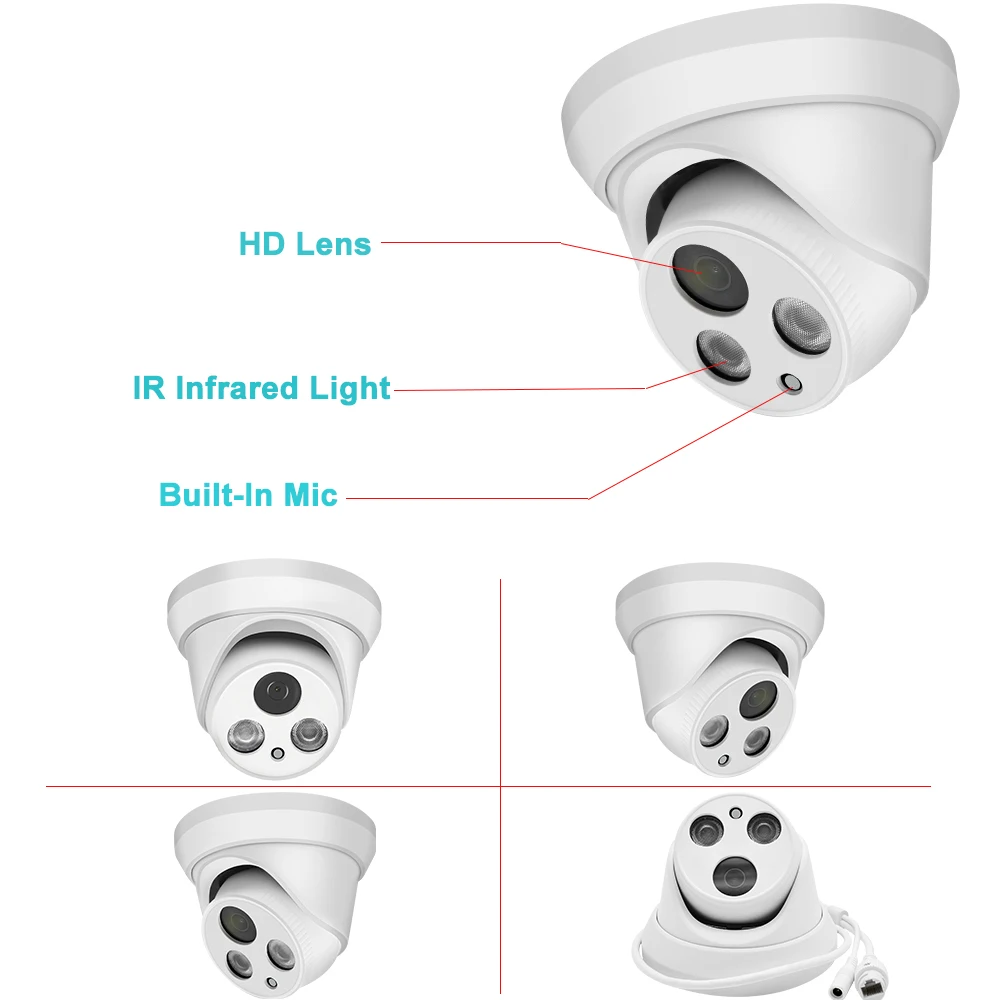 Совместимая с Hikvision купольная IP-камера 2 шт. 8MP PoE Встроенны...