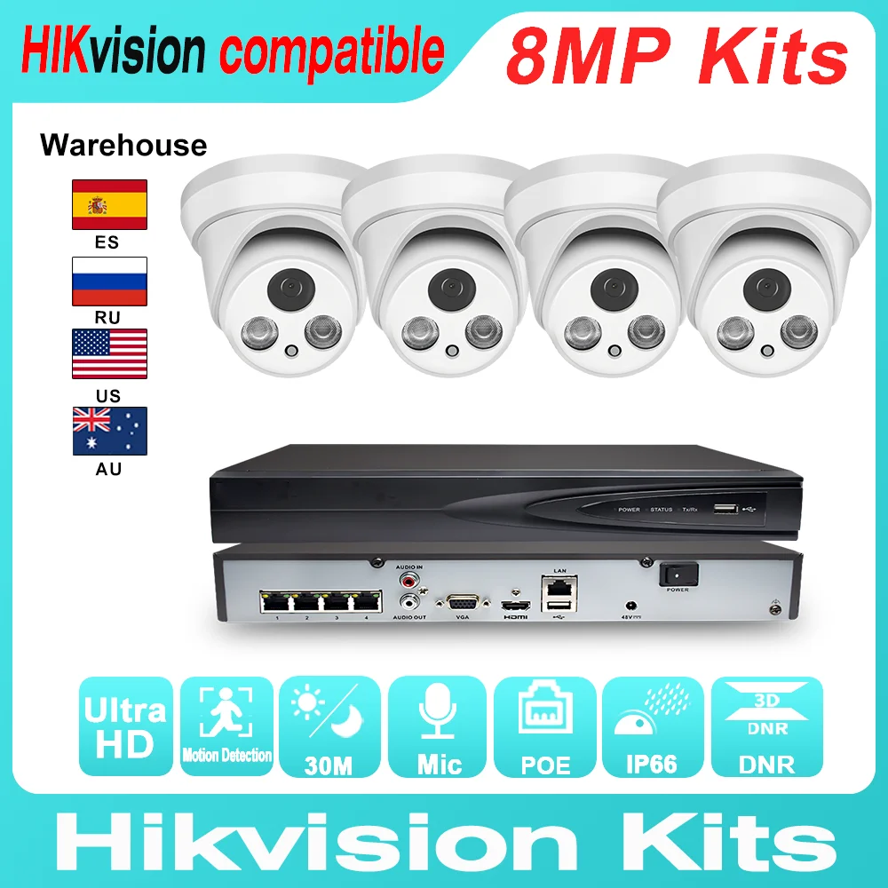 Hikvision совместимые наборы IP Bullet Camera 4K 8MP 4 шт. Встроенн...