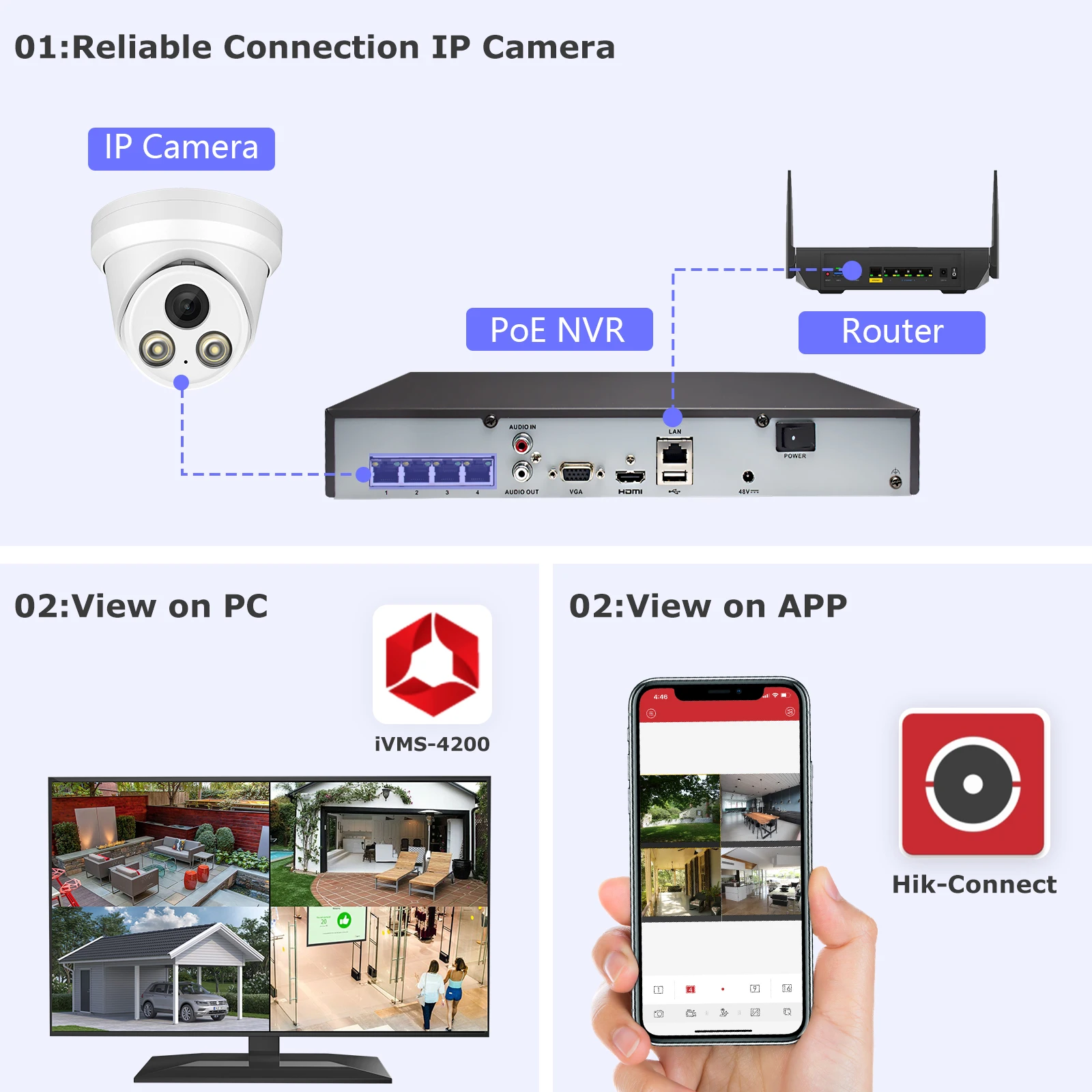 Hikvision совместимые наборы 4 шт. 5MP POE IP-камера ColorVu Hikvi...