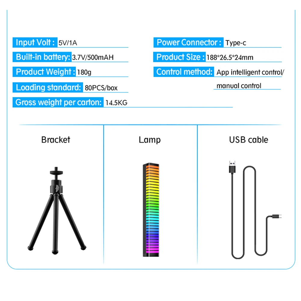 3D дисплей приложение управление RGB музыка окружающий светильник бар Голосовая активация пикап ритм лампа комплект с кронштейном Украшение Рабочего Стола автомобиля (тип-c перезаряжаемый)