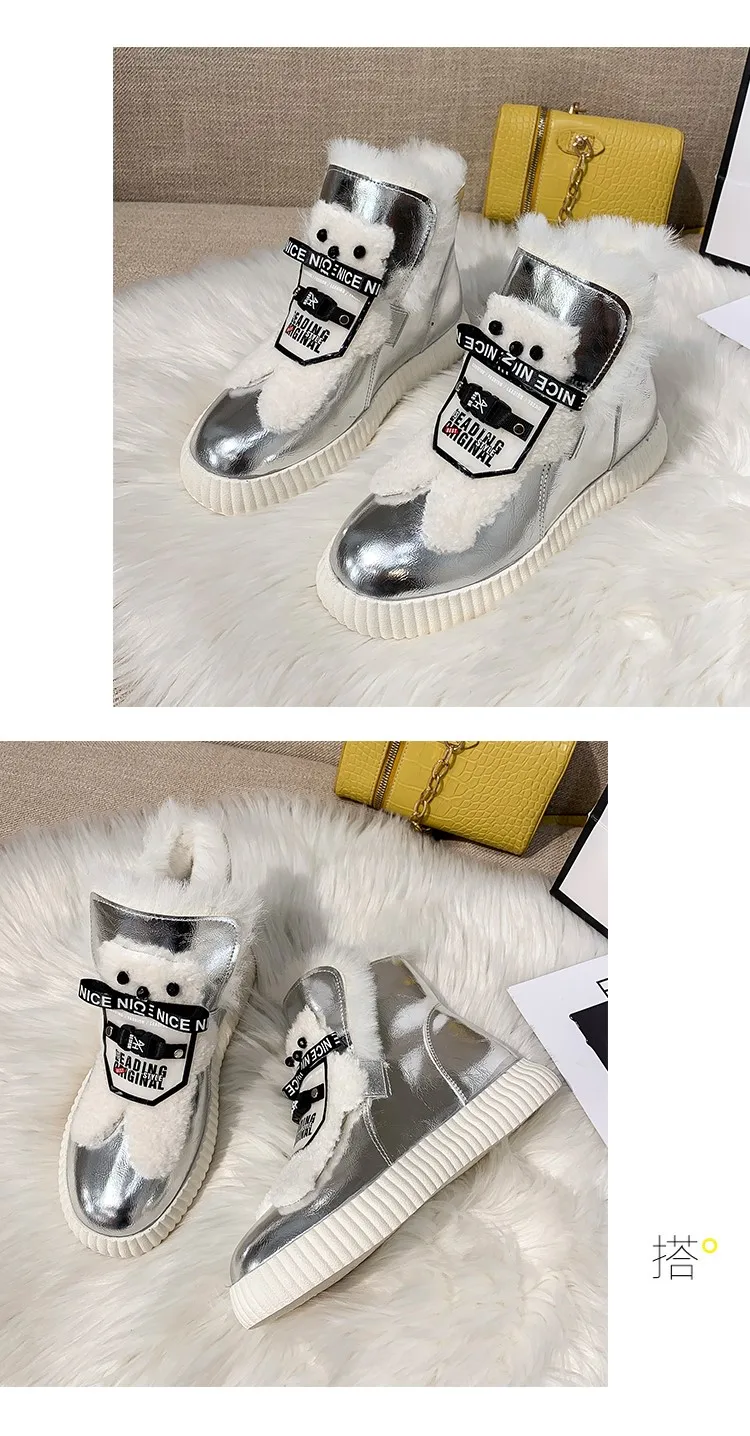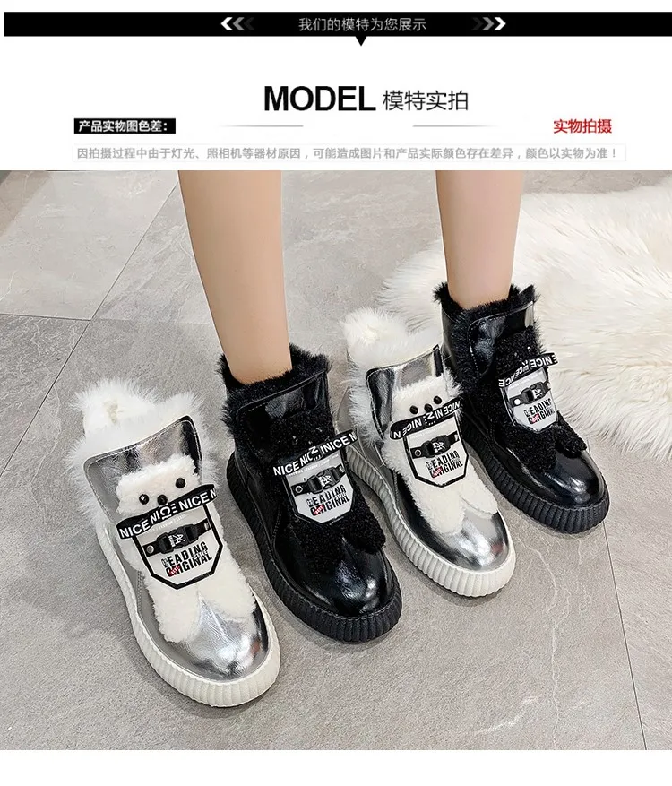 Женские плюшевые сапоги для снежной погоды, зимние сапоги с медведем, теплые уличные короткие сапоги из хлопка, новинка 2021, Студенческая женская обувь, сапоги на толстой подошве