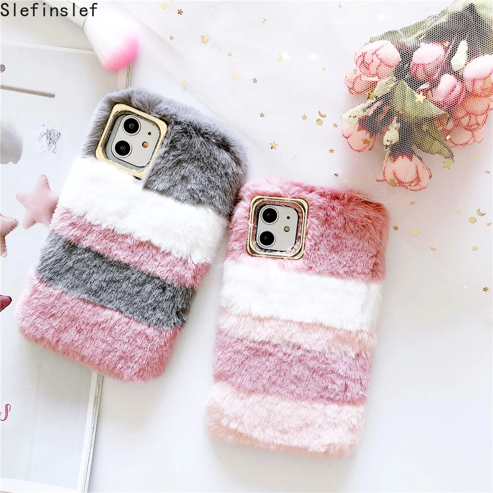 Роскошные Плюшевые Меховые чехлы для iPhone X XS XR 6 6S 5 5S 5C 4 ...