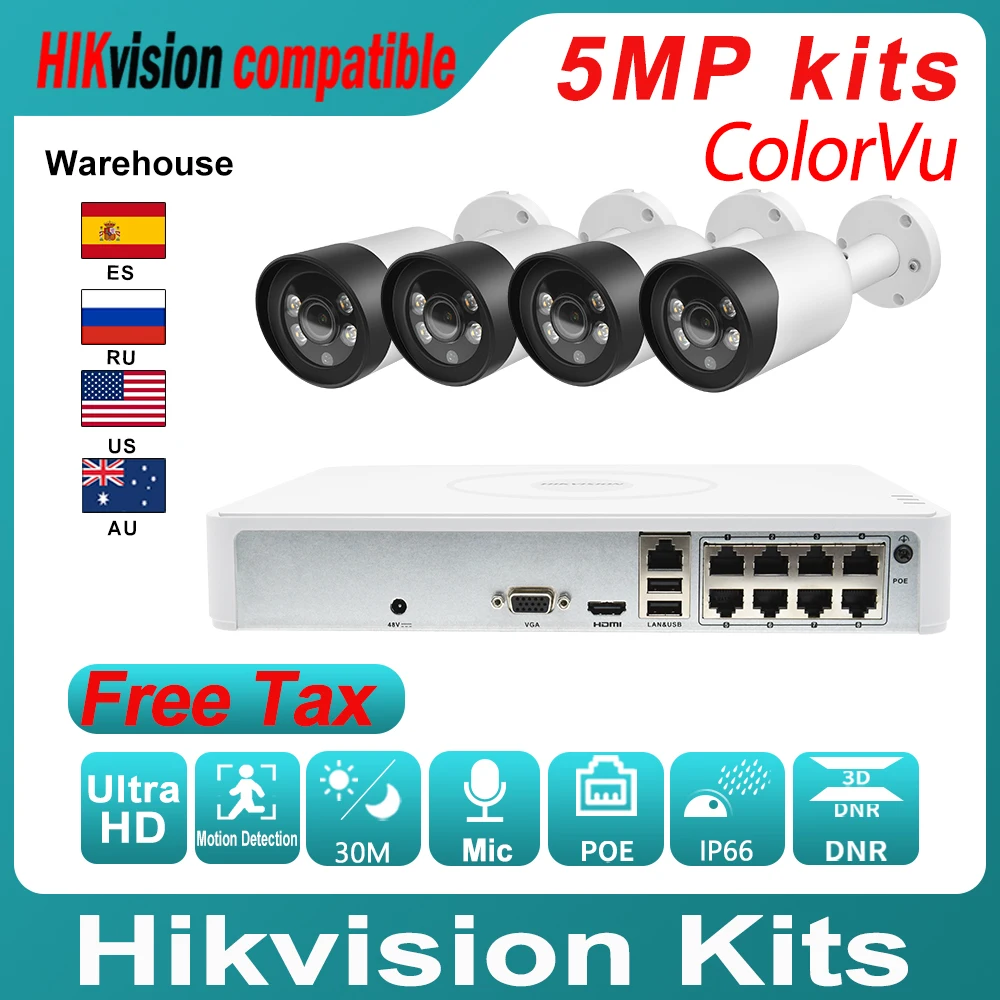 Hikvision совместимые наборы IP-камеры 5MP 4 шт. Встроенный микрофон ColorVu + Hikvision оригинальный NVR DS-7108NI-Q18P POE CCTV система