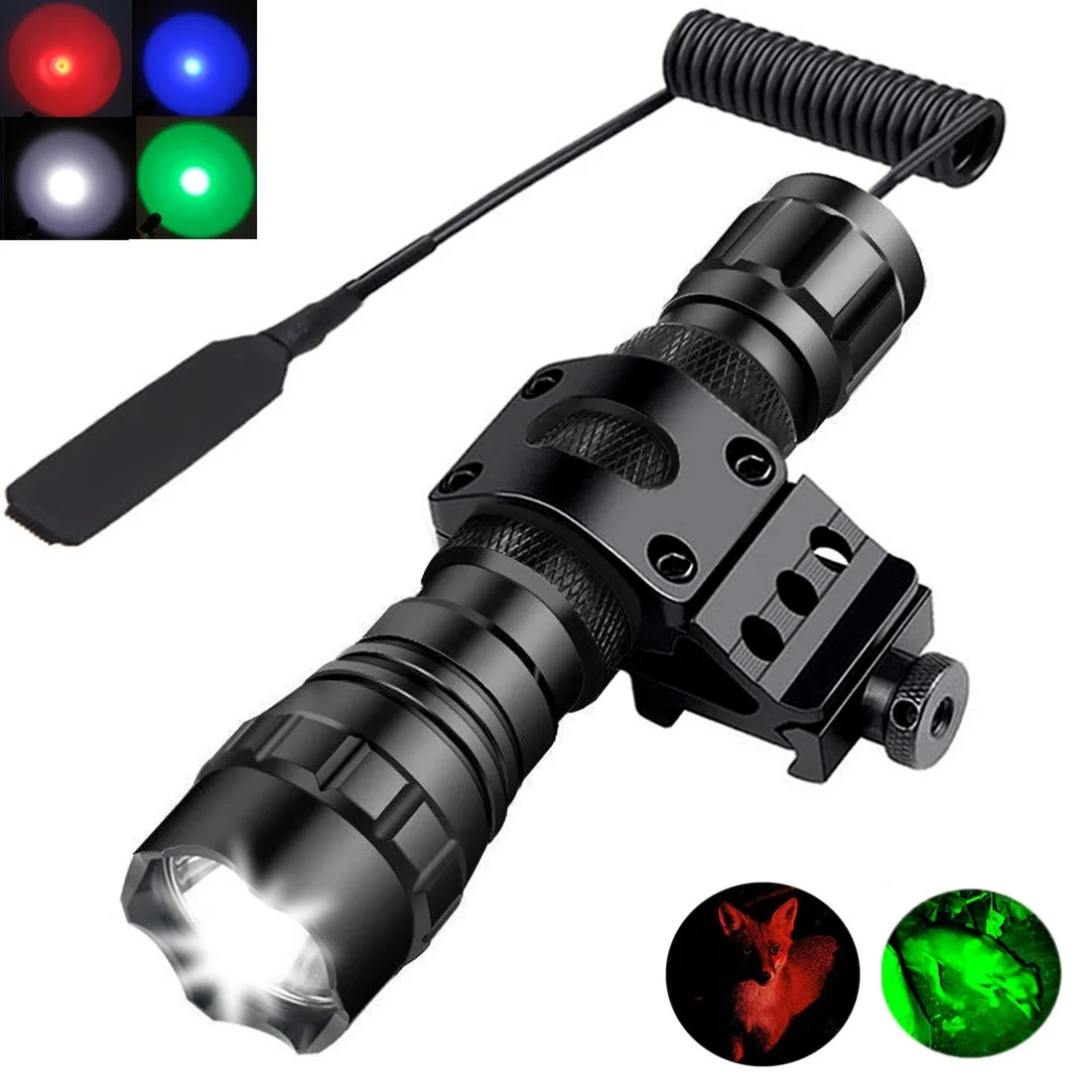 Тактический красныйзеленыйбелыйфиолетовый 1200 люмен, светодиодный фонарь 501B для охоты, страйкбола, фонарь для разведки, уличный фонарь для винтовки, пистолета, рельсовый 20 мм