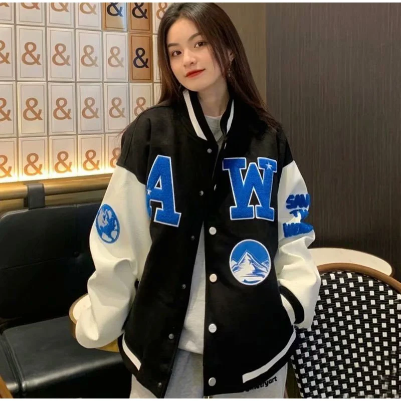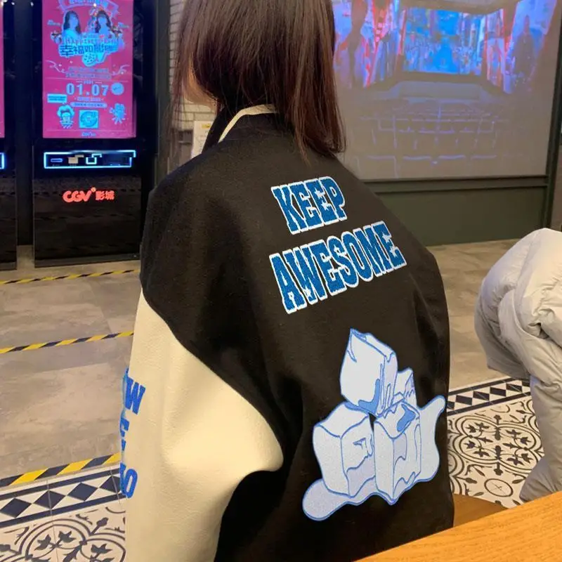 Женская бейсбольная форма с буквенным принтом, новинка 2021, однобортная куртка оверсайз в стиле пэчворк, свободная куртка в Корейском стиле Харадзюку, пальто унисекс
