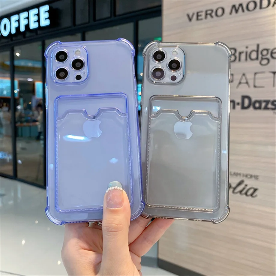 Простой прозрачный силиконовый чехол-бумажник для карт для iPhone 12 11 13 Pro Max XS 7 8 Plus X XR 13 Pro, противоударный защитный чехол для объектива