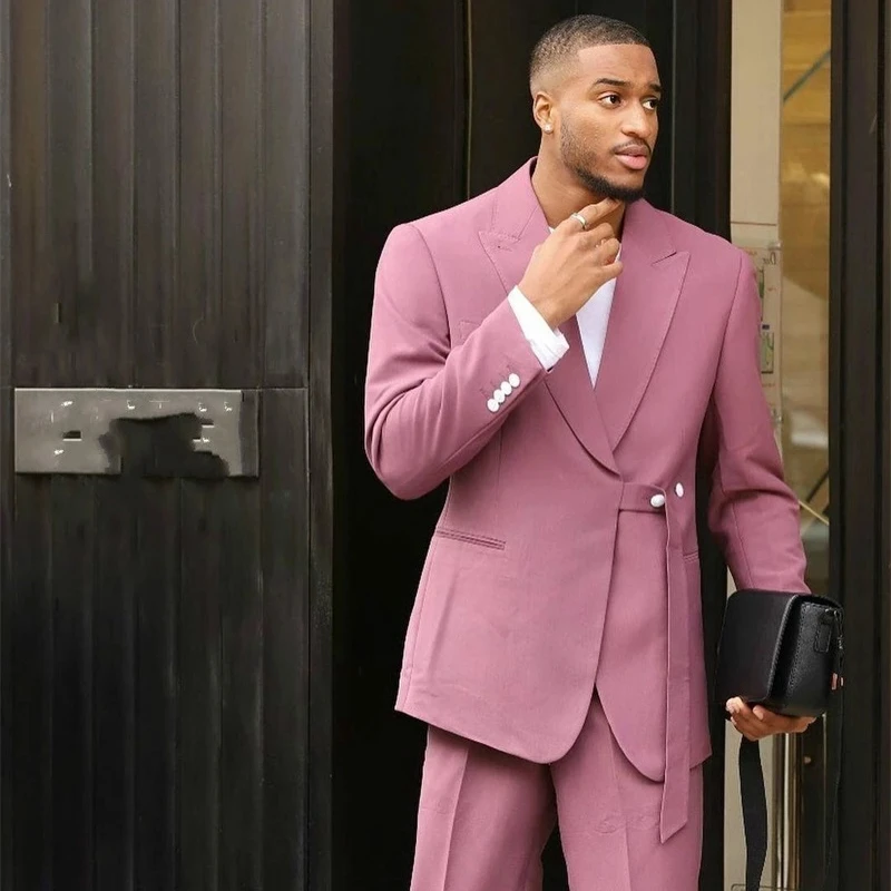 Новый дизайнерский мужской костюм с поясом, облегающий смокинг для выпускного вечера, костюмы для свадебных женихов, Мужской Блейзер, 2 предмета (пиджак + брюки), мужской костюм