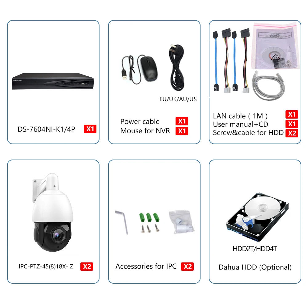 Hikvision совместимый комплект IP PTZ-камер 18X оптический зум и Hikvision оригинальный NVR DS-7604NI-k14P система видеонаблюдения CCTV