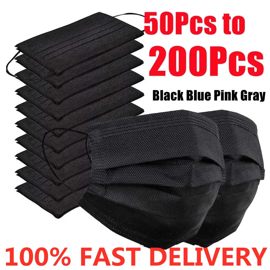 10-200 шт. маска одноразовая маска для лица Черный Nonwove 3 Слои м...