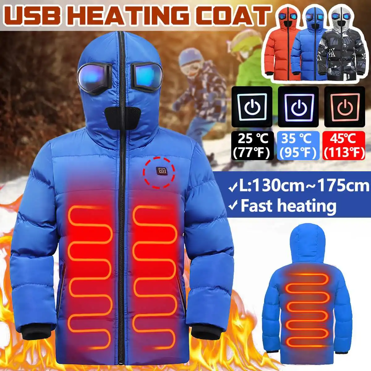 Жилет детский зимний с подогревом 170 см и капюшоном, с USB-зарядкой