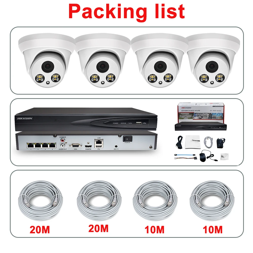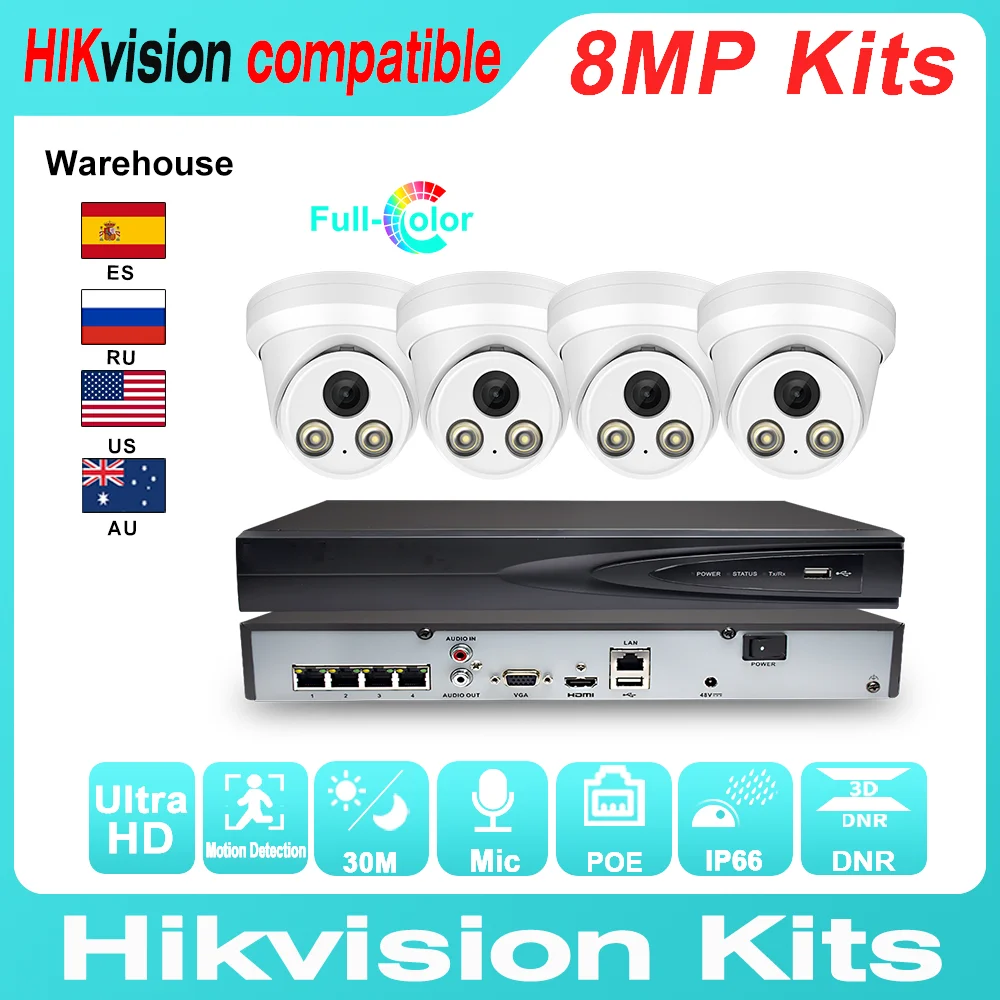 Hikvision совместимые наборы 4 шт. 5MP POE IP-камера ColorVu Hikvision 8CH POE NVR DS-7604NI-Q14P DIY система видеонаблюдения