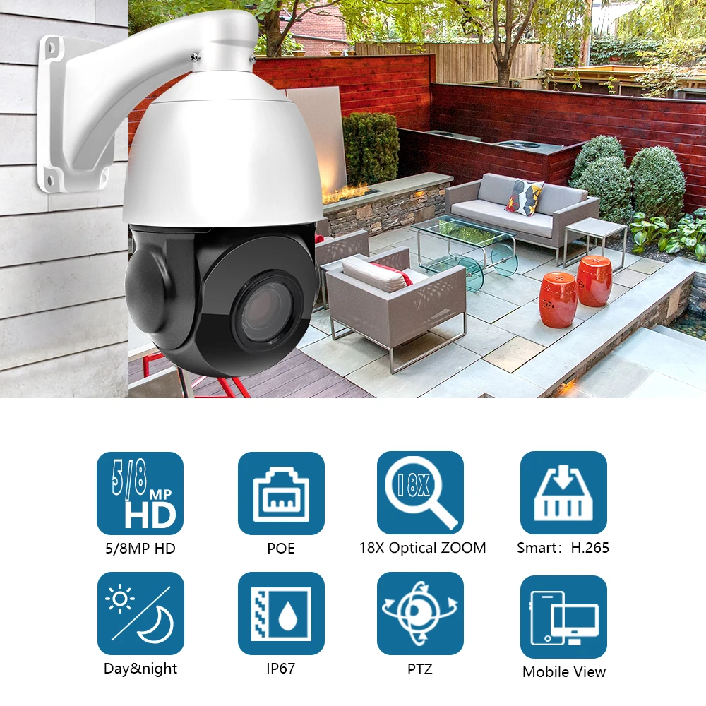 5/8MP 18X PTZ сетевая камера· 5 Мп: 1/2.8 ”5 Мп CMOS8 Мп: 1/2.8 ”8 Мп CMOS· Мощный 18X оптический зум, цифровой зум 30X· WDR, день/ночь (ICR), DNR· 5 Мп: Макс.20fps 5MP / 30fps 4MP8 Мп: Макс.20fps 8MP / 30fps 6MP· Диапазон панорамирования: от 0 до 360 °, Диапазон наклона: от-15 до 90 °· Поддержка PoEСовместимость: HIKVISION,ONVIF· IP66