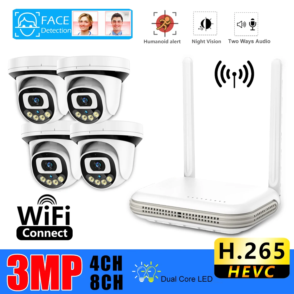 Беспроводная система видеонаблюдения H.265, 8 каналов, Wi-Fi, Xmeye, NVR, 3 Мп, 5 Мп, наружная водонепроницаемая IP-камера безопасности с поддержкой Wi-Fi, комплект видеонаблюдения с аудио