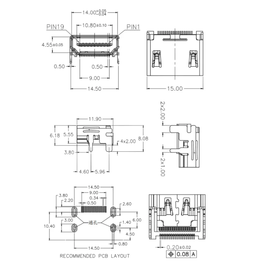 5 шт. 19PIN 19 P HDMI разъем под прямым углом smt smd 90 градусов позолоченный hd 19PIN