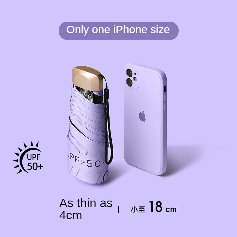 Маленький и легко носить с собой. Вес: 215 г Размер зонта 19*7*4 см, когда он уменьшается, и диаметр 92 см после открытия. Зонт высотой 55 см. Он может предотвратить ультрафиолетовые лучи и дождь, что очень удобно.