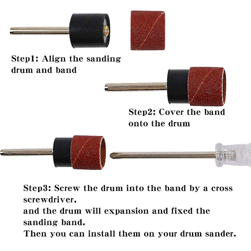 Простота в использовании: просто нужно сдвинуть шлифовальные Барабаны в барабанный шлифовальный станок, убедитесь, что барабан плотно привинчен, вы можете непосредственно начать свой проект.