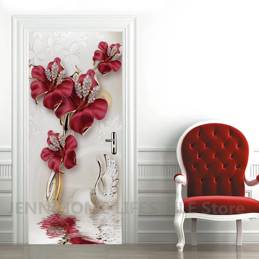 Роскошные 3D наклейки на двери с цветами, деревянная книга, самоклеящиеся виниловые обои для декора стен, для гостиной, наклейка, лошади, плакаты, фрески
