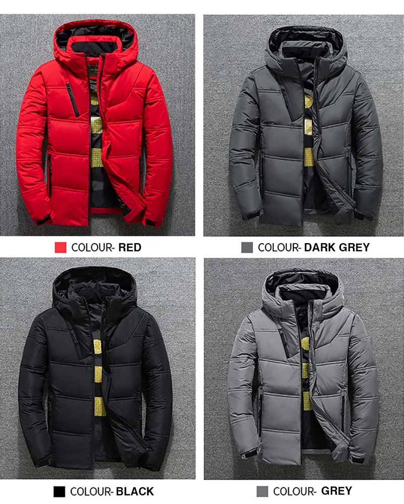 Новинка, мужская зимняя куртка на белом утином пуху, теплый однотон...