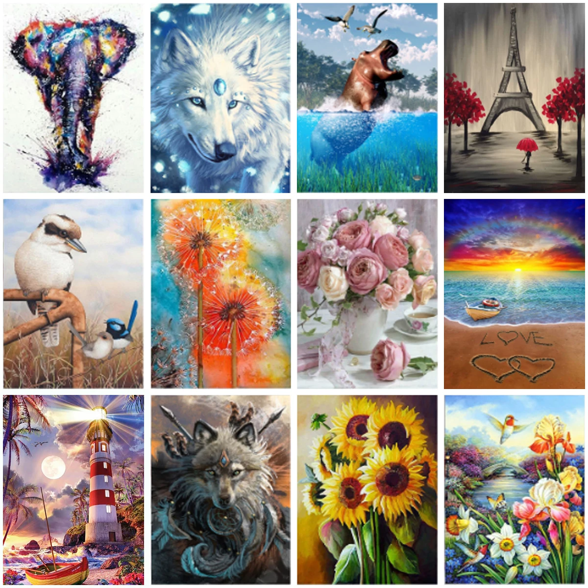 Полноразмерная Алмазная 5D картина с животными, пейзажем, цветами, ...