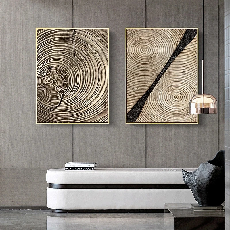 Настенные постеры с зернистой текстурой древесины, настенные картины с абстрактным скандинавским изображением колец, декор для гостиной и дома