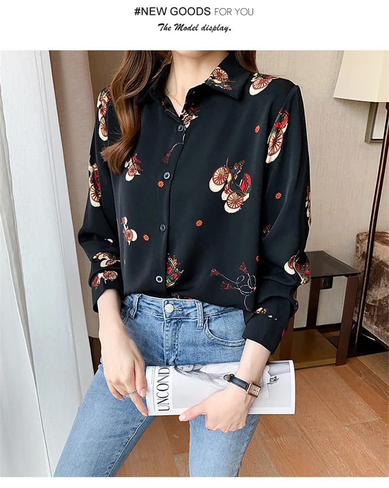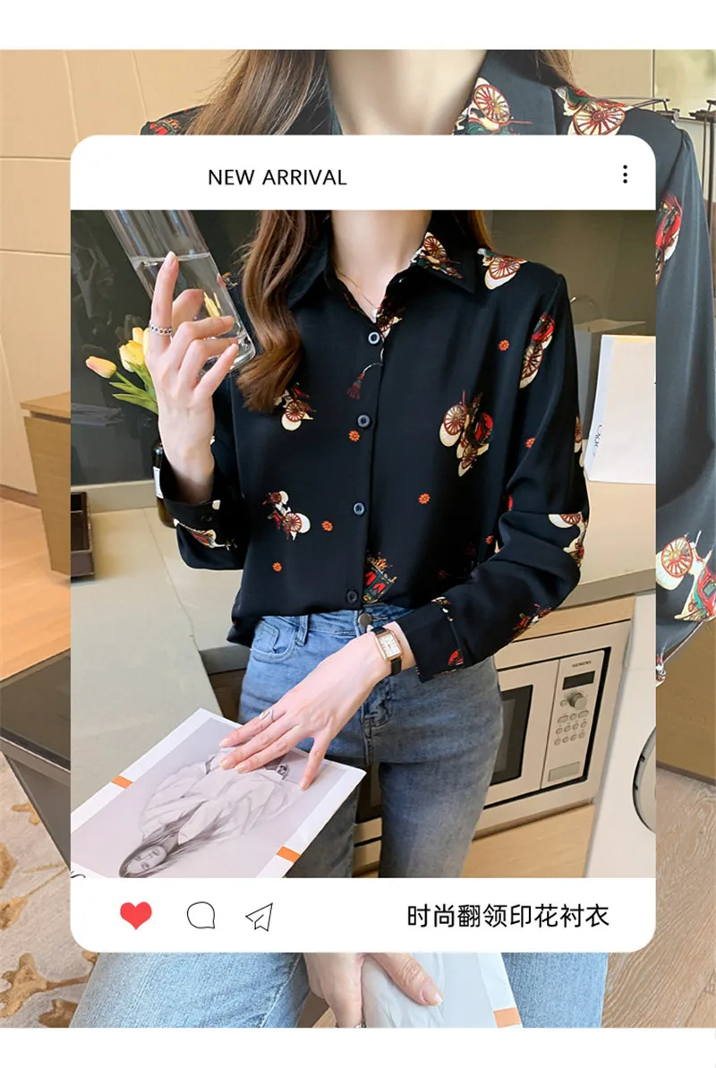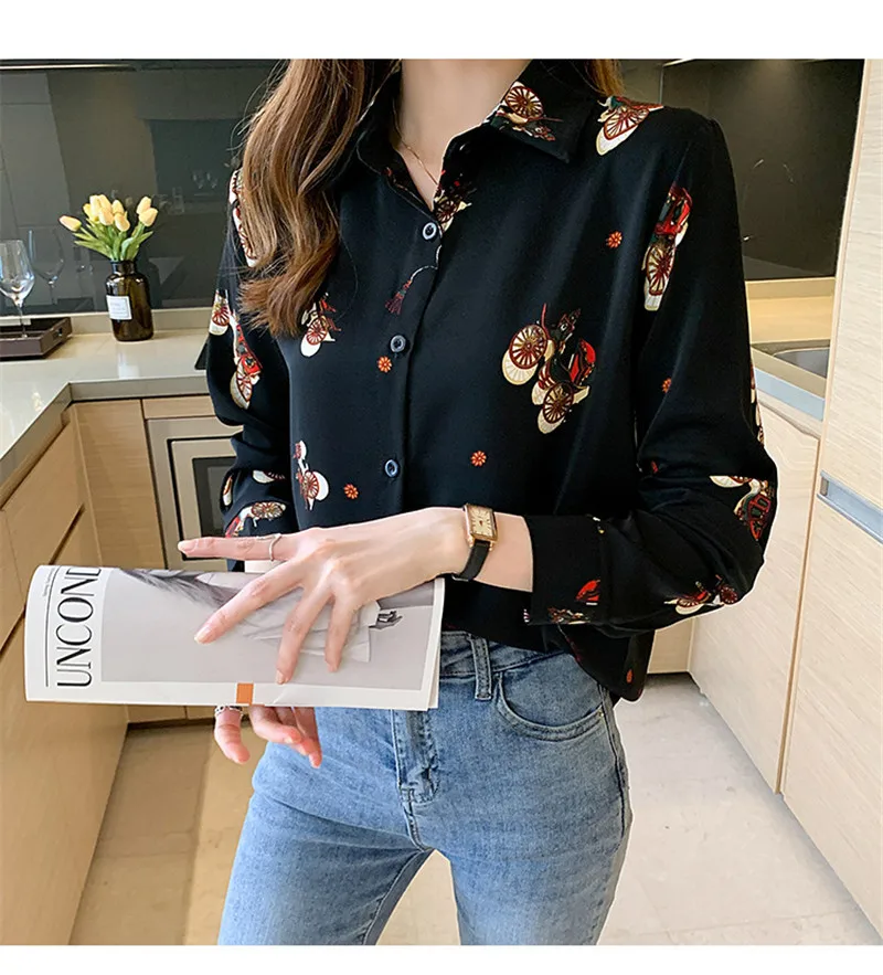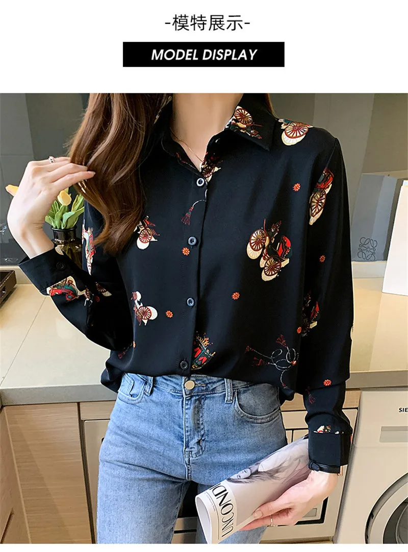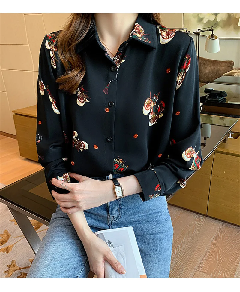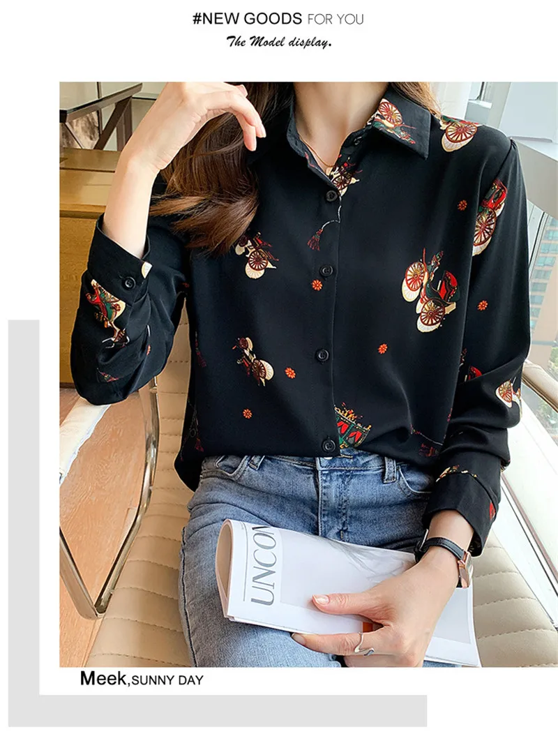Женская шифоновая блузка с длинным рукавом, элегантная Свободная блузка с цветочным принтом в Корейском стиле, топы, женская одежда, туники, весна 2022