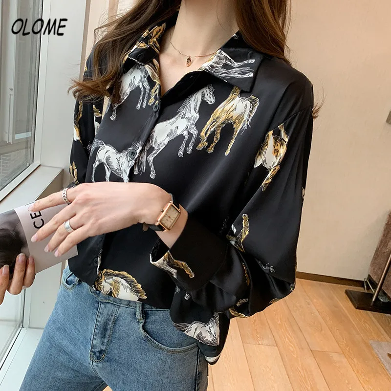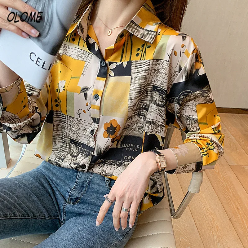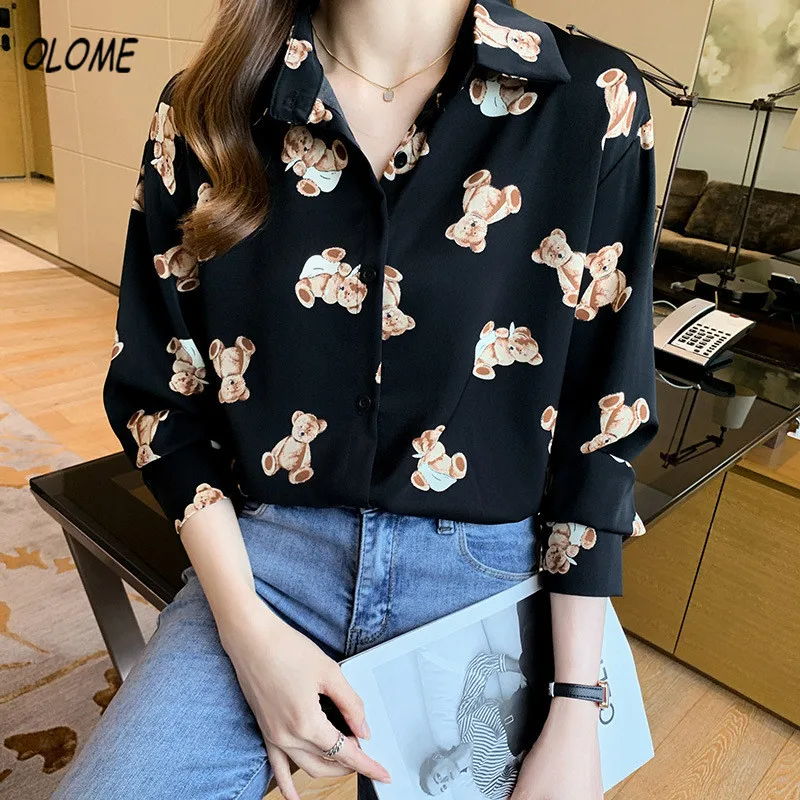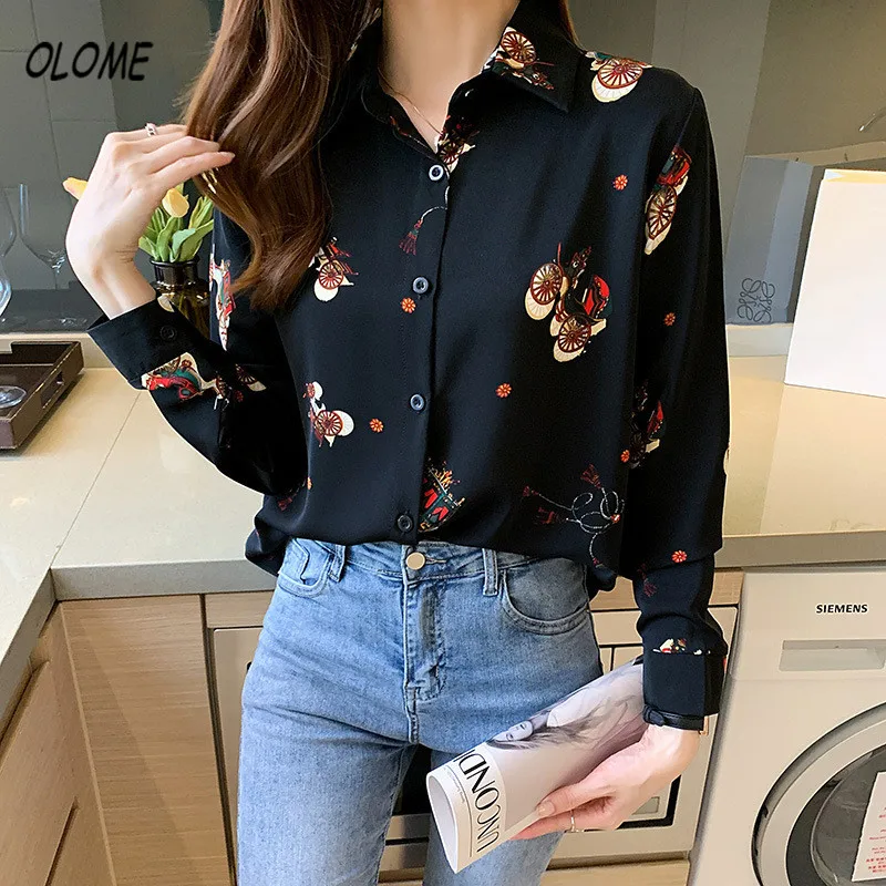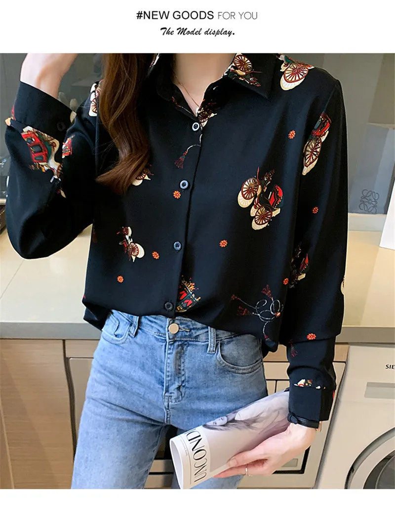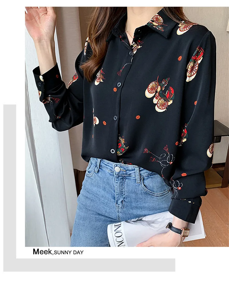 Женская шифоновая блузка с длинным рукавом, элегантная Свободная блузка с цветочным принтом в Корейском стиле, топы, женская одежда, туники, весна 2022