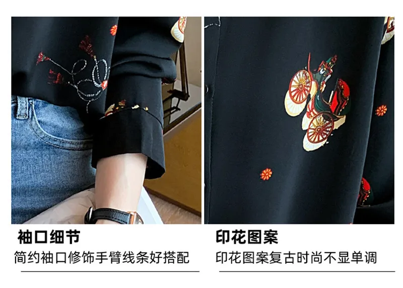 2021 Корейская женская шифоновая рубашка Весна Длинный рукав цветочный принт элегантные женские свободные блузки Топы Женская одежда туники